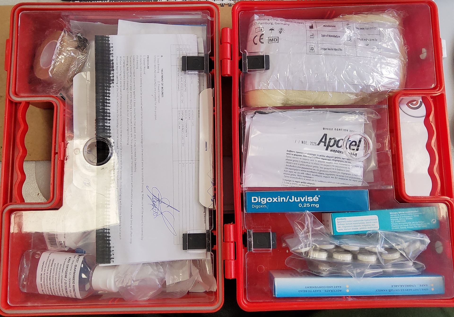 • Εξοπλισμός α’ βοηθειών – φαρμακεία παντός τύπου – κράνη – γιλέκα φωσφοριζέ